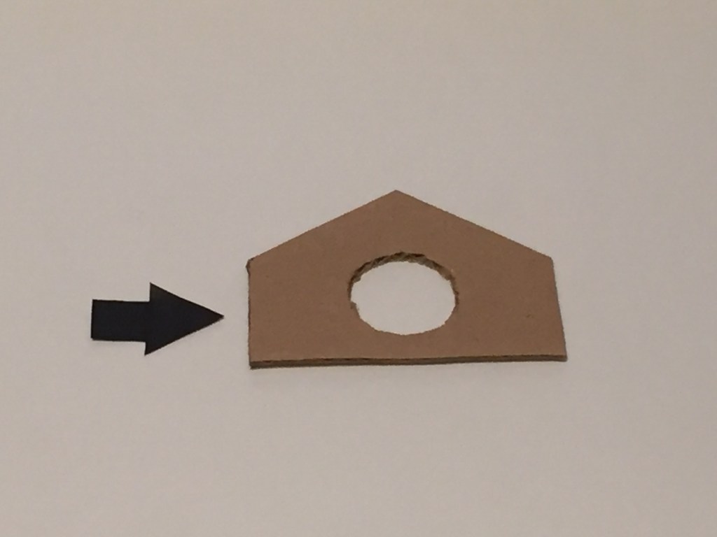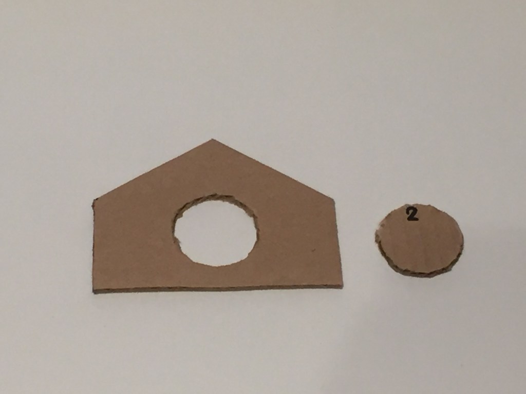 - Take one of the pieces and using your drawing compass or circle template, cut out a round hole in the lower middle section.