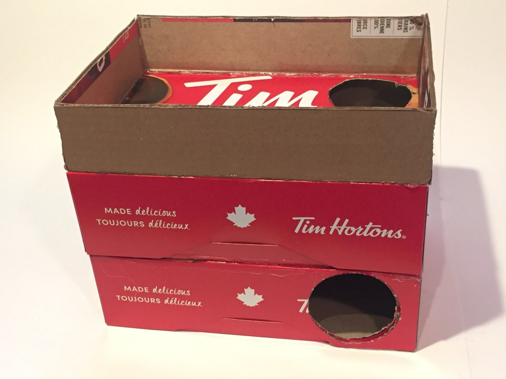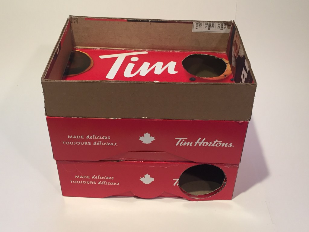 - Stack the two boxes, putting the one with two holes on the bottom.