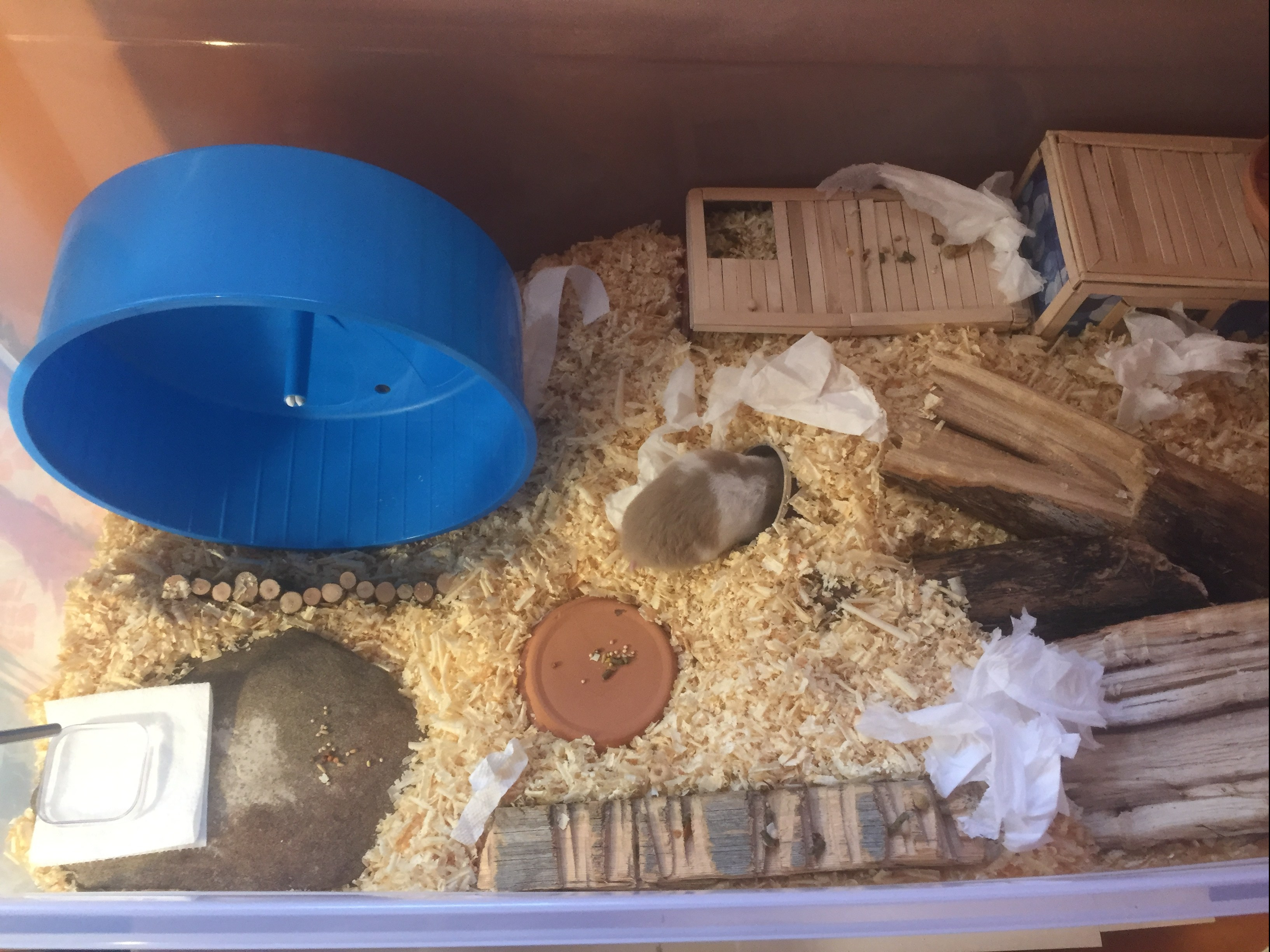 Have a carrier or playpen to put your hamster in when you’re cleaning. I have a 10 gallon tank (‘Beanie’s Holding Cell’) where I keep her while I clean.