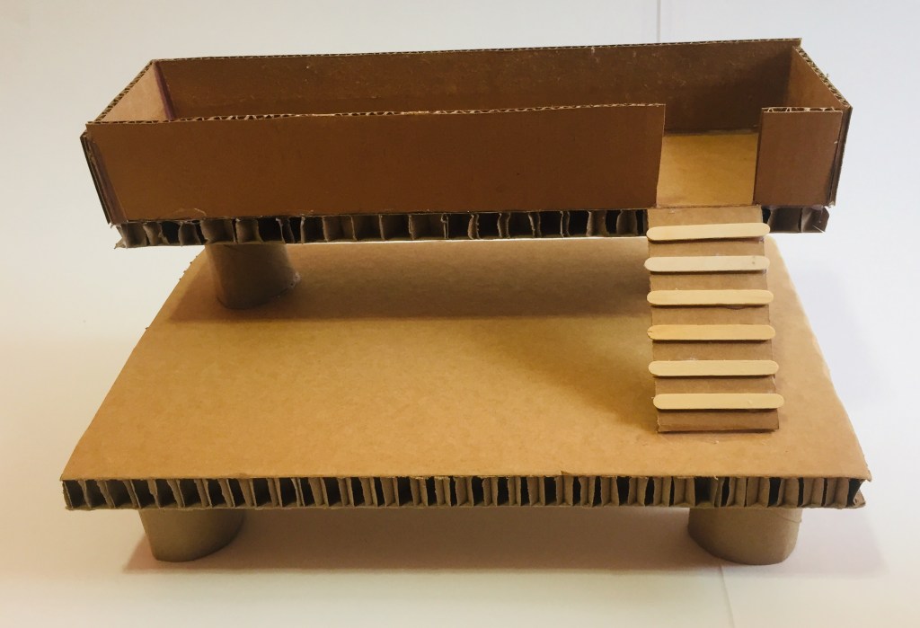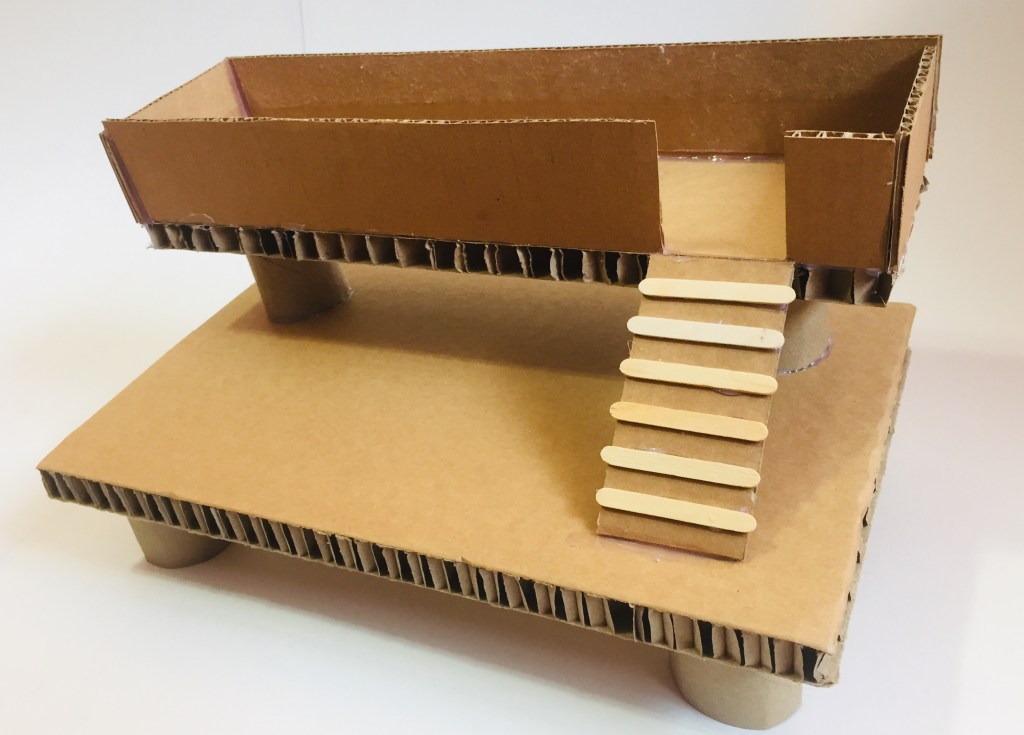 - Glue the ramp into the ‘doorway’ to the upper platform.