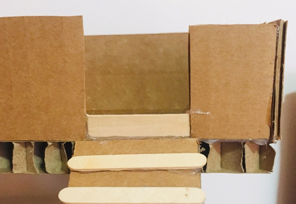 - Measure and cut a popsicle stick to fit into the second-story doorway.